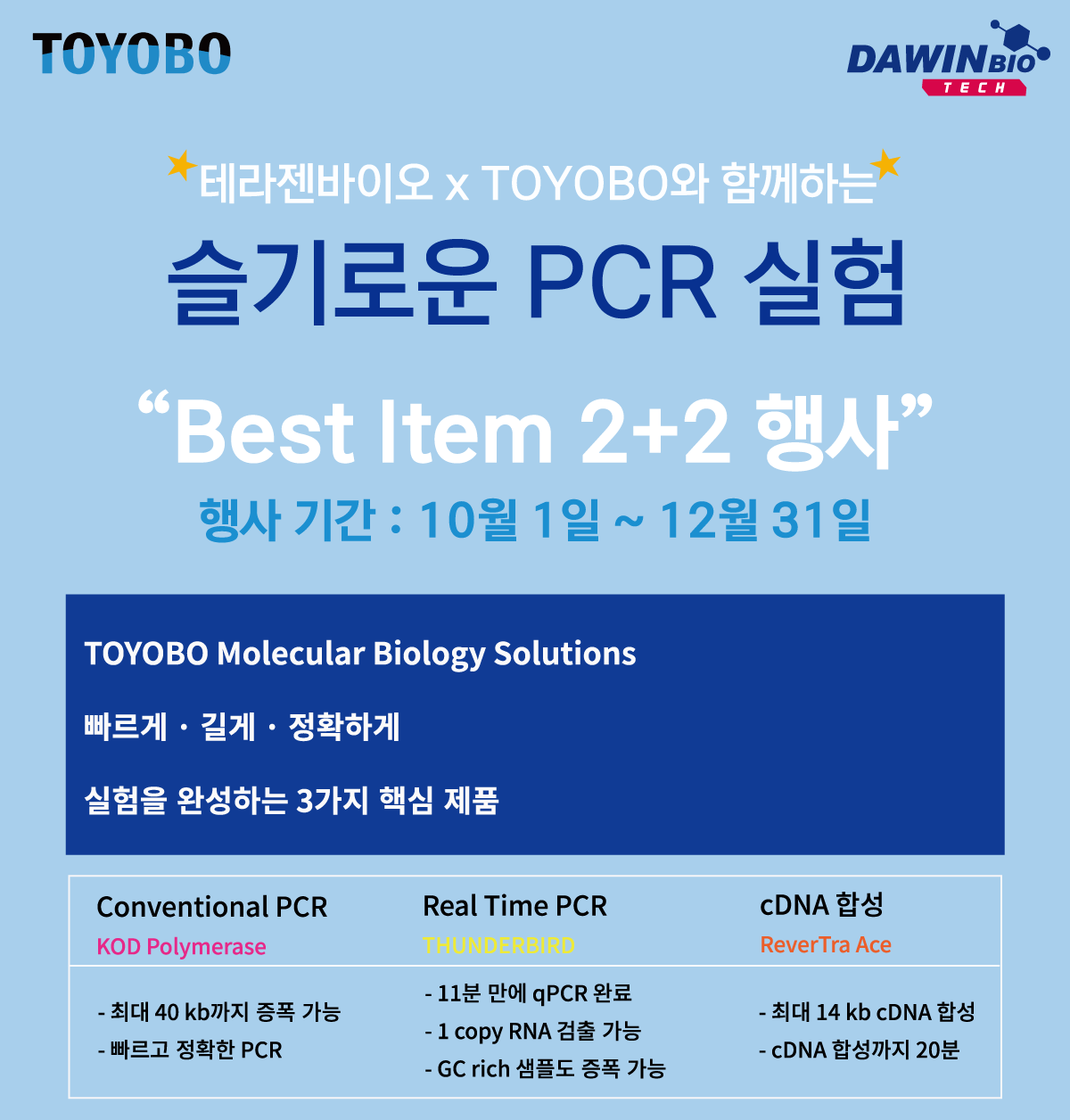 | - GC-rich 등 증폭하기 까다로운 샘플에 추천 - 1 kb size에 대한 qPCR 실험 가능 |