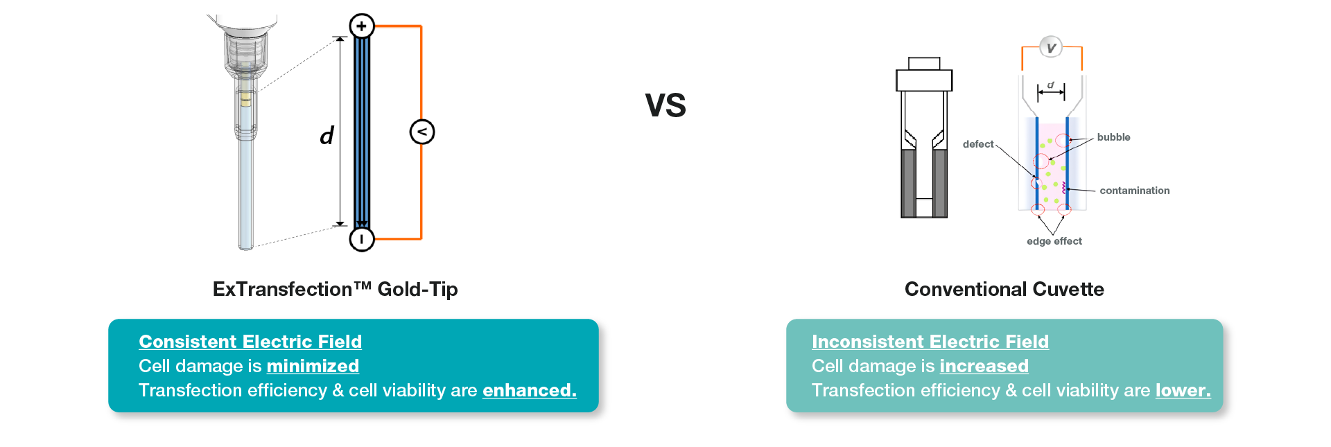 ExTransfection Electroporation System은 단일 chamber tip을 사용하여 정밀한 pulse를 전달함으로써 높은 viability와 고효율의 transfection을 가능하게 하는 전기천공 장비입니다.